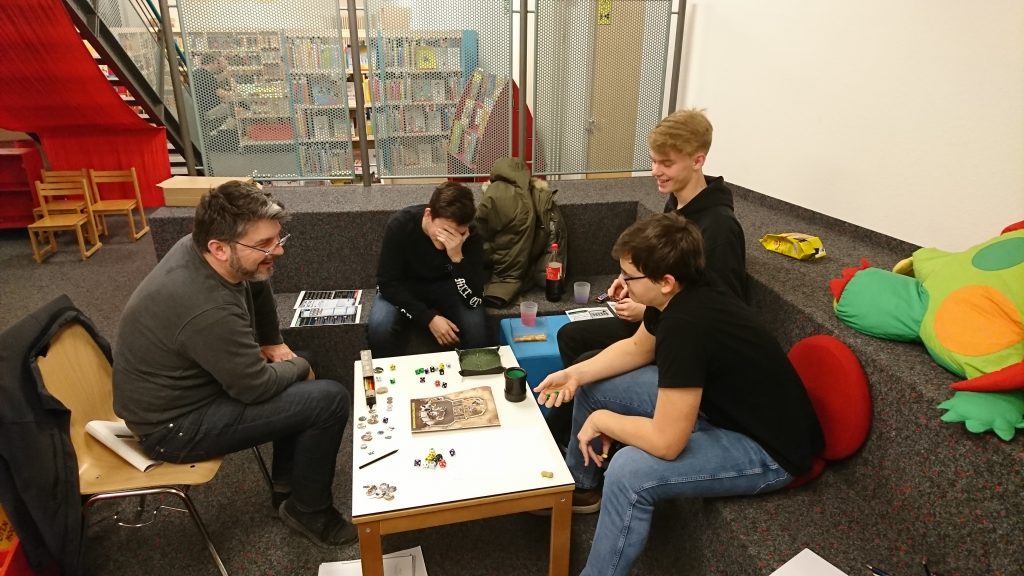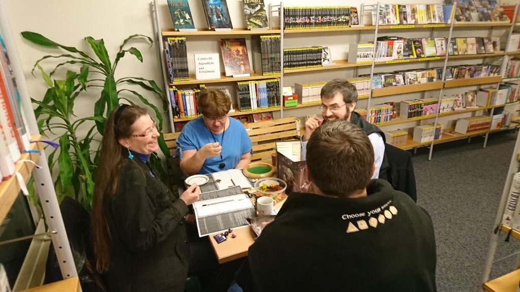Neben erfahrenen Rollenspielern waren auch einige Neulinge dabei und ein paar Leute, die seit Jahren kein Rollenspiel mehr gespielt haben. Es hat sich aus der Bibliothek wohl auch bereits eine feste private Runde heraus gegründet. Das ist für uns Raben natürlich der größte Anreiz.